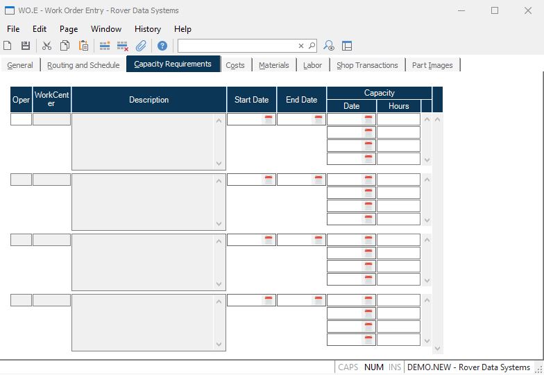 Capacity Date Contains the dates on which the associated hours are required for processing at the work center. The dates and hours may be adjusted if required.