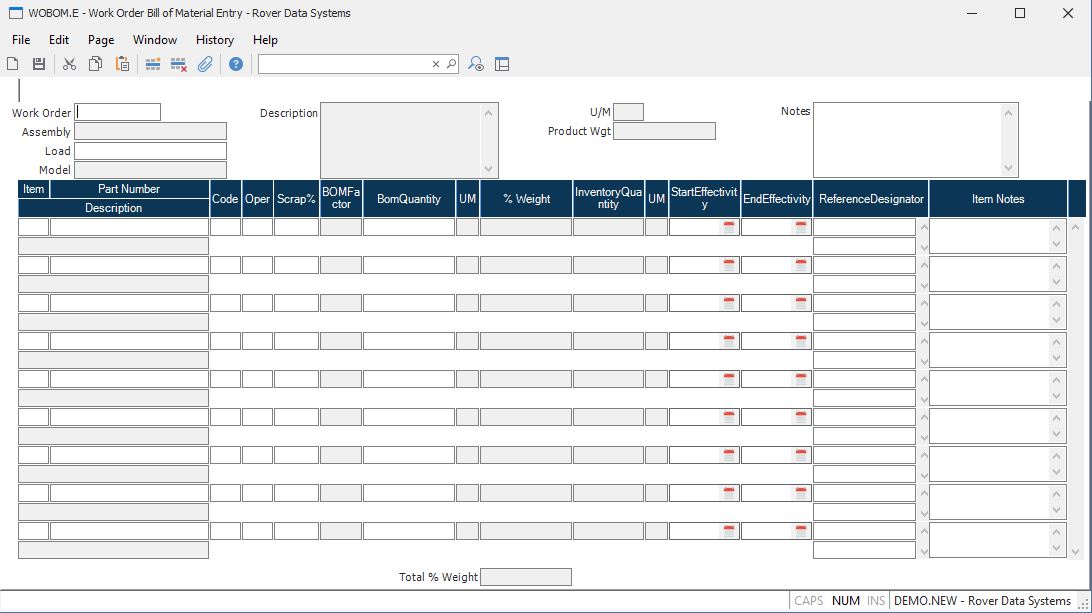 Work Order Bill of Material Entry (WOBOM.E)