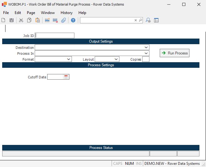 Work Order Bill of Material Purge Process (WOBOM.P1)