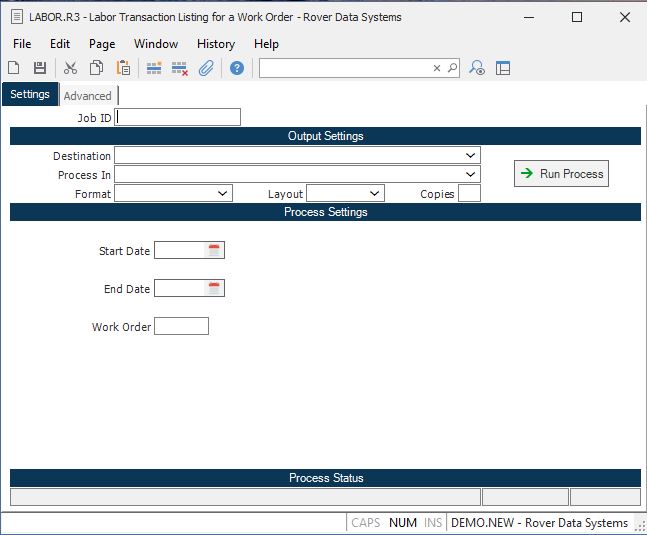 Work Order Enter the number of the work order whose labor records are to be listed.