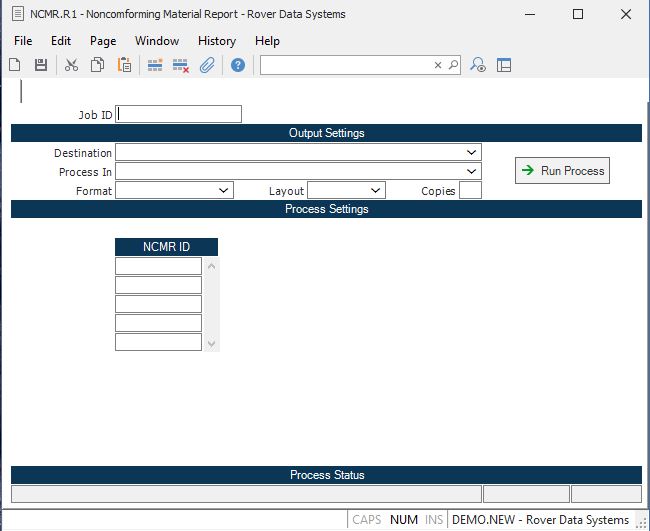 Run Process Click on the button to run the process. This performs the save function which may also be activated by clicking the save button in the tool bar or pressing the F9 key or Ctrl+S.
