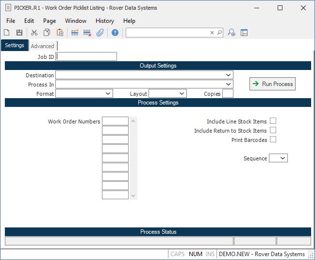 Work Order Numbers Enter all of the work order numbers for all of the picklists you want printed.