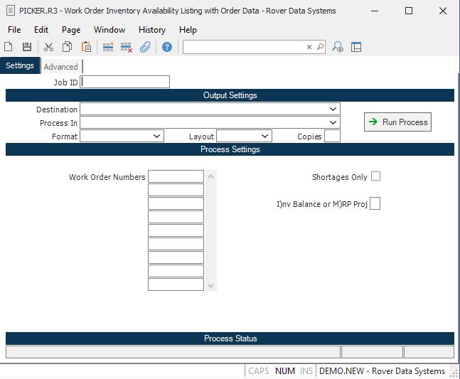 Work Order Inventory Availability Listing with Order Data (PICKER.R3)