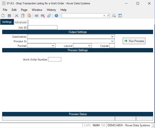 Work Order Number The work order number entered at this prompt determines which transactions will be included in the listing. Only those transactions which show the work order entered as the origination work order will be included.