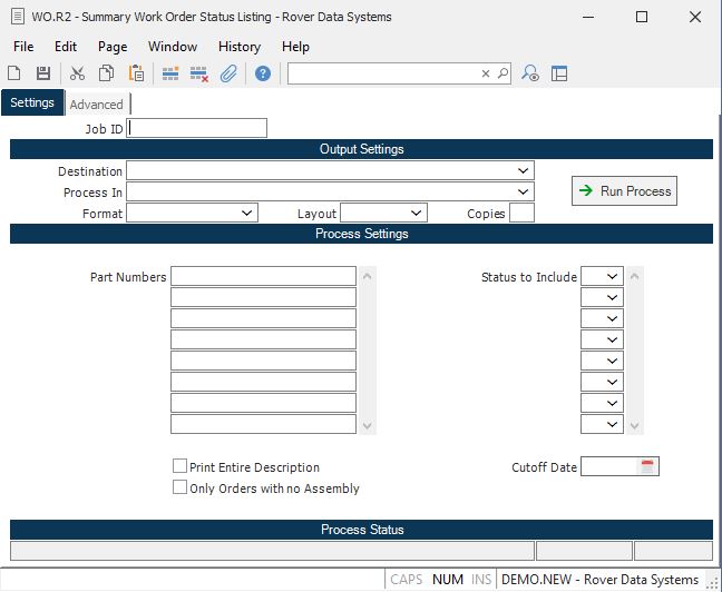 Cutoff Date Enter the cutoff date to be used in selecting the items for this report. Any work order with a required date less than or equal to the date entered will be included. Leave this field blank to include all work orders.