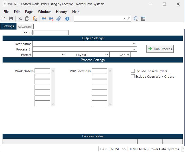 WIP Locations If you want to restrict the listing to include only the work orders within certain work-in- process locations then enter the locations you want to include in this field. If the field is left blank then all work-in- process locations will be included, sorted by location.