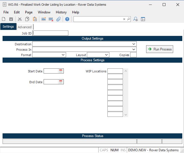 WIP Locations If you want to restrict the listing to include only the work orders within certain work-in- process locations then enter the locations you want to include in this field. If the field is left blank then all work-in- process locations will be included, sorted by location.