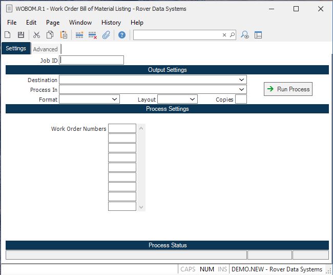 Work Order Numbers Enter all of the work order numbers for all of the work order bills of material you want printed.