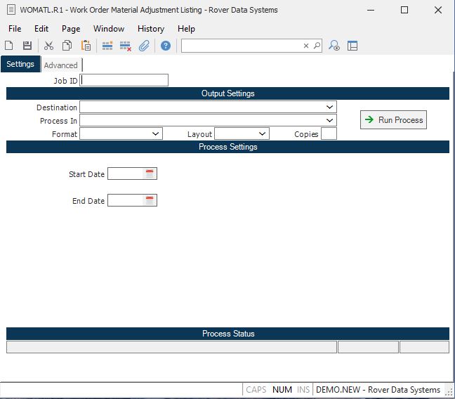 Work Order Material Adjustment Listing (WOMATL.R1)