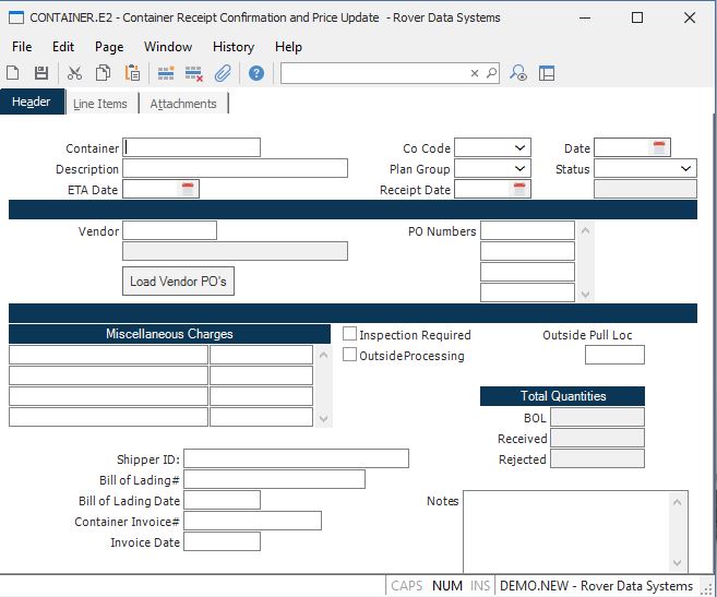 Rec Date The date the container was actually received. This will be assigned by the system when the status is changed to C (confirmed receipt). It can be updated manually, if necessary.