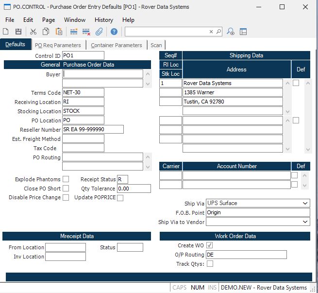 Ship via Enter the default method of shipment for purchase order entry which should be used when there is no default specified in the associated vendor record.