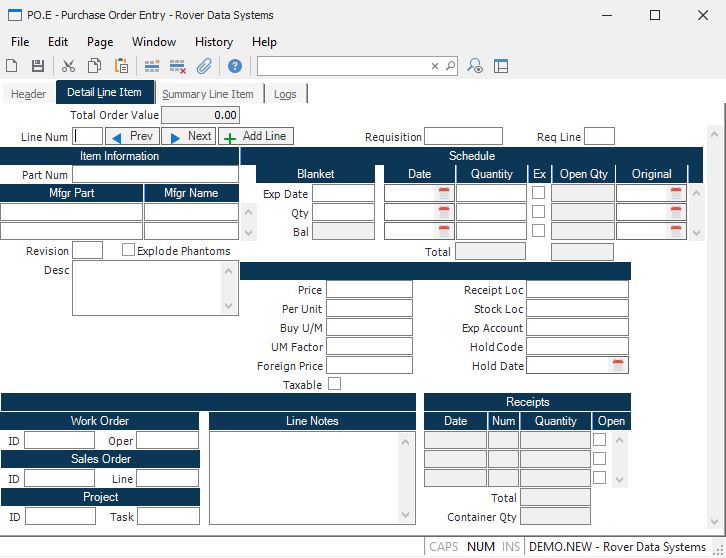 Line Num Enter the line item number to be used in identifying the associated item on the purchase order. To assign the next sequential line item number, enter "N".