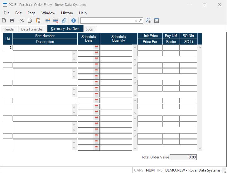 Li# Enter the line item number to be used in identifying the associated item on the purchase order. The next sequential number will be automatically assigned if the prior line item is numeric.