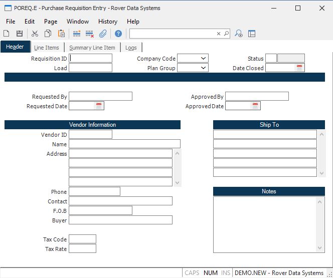 Purchase Requisition Entry (POREQ.E)