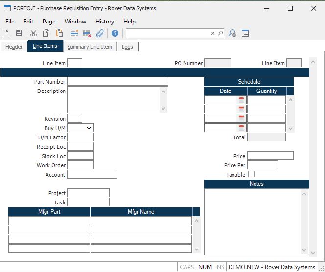 Purchase Requisition Entry (POREQ.E)