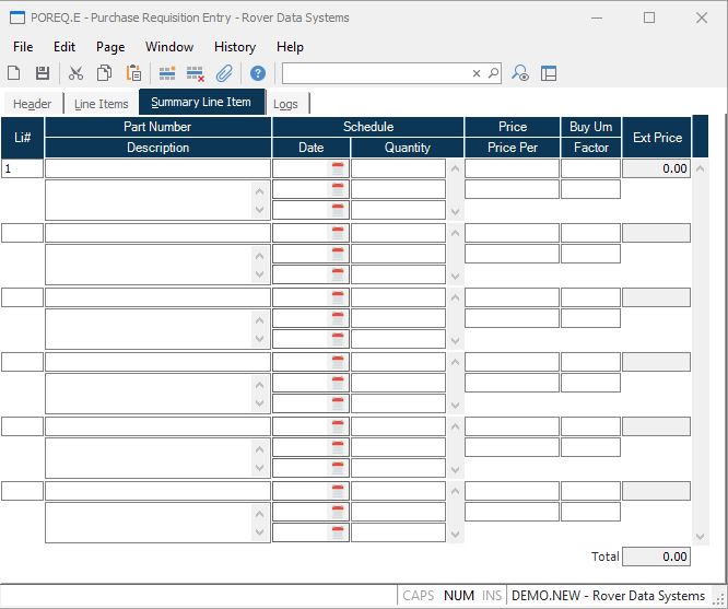 Line Item Enter the line item number to be associated with each item to be purchased. To assign the next sequential number automatically enter the letter "N".