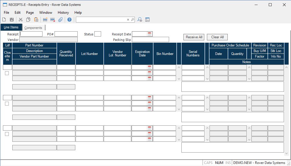 Receive All Pressing this button will cause all of the open purchase order quantities to be defaulted into the quantity fields. At that point, changes could be made to the receipt quantity.