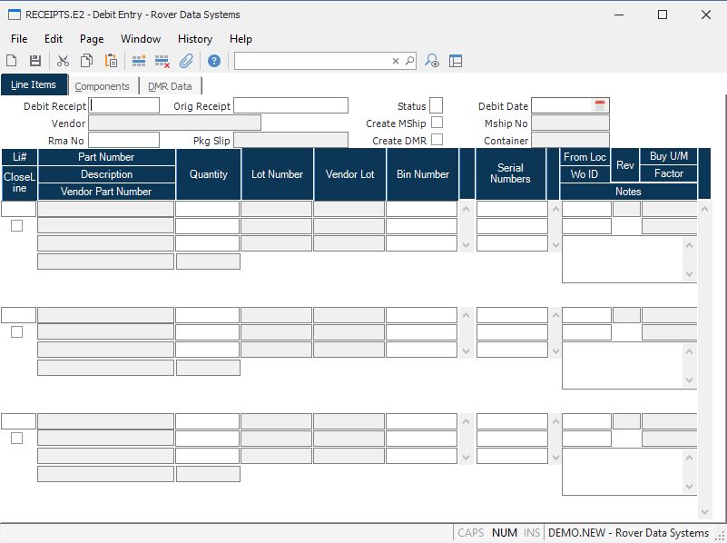 Receipt Qty Enter the quantity to be debited. If this item is either lot or bin controlled, enter the quantity associated with each lot or bin. If it is neither then enter the entire debit quantity for this line.