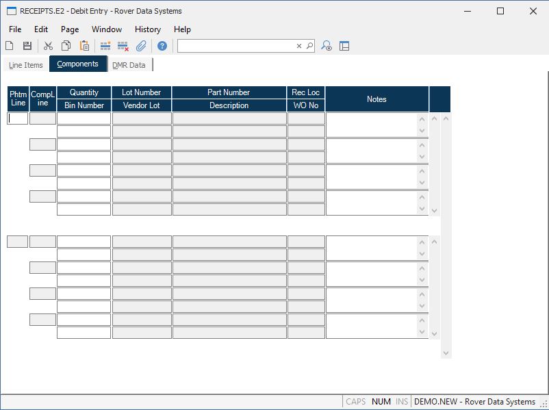 Comp Notes Enter any notes pertaining to this component part debit receipt.