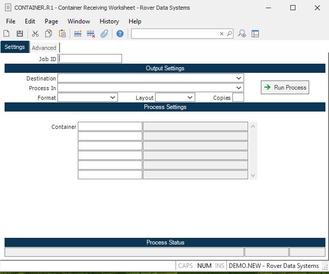 Container Receiving Worksheet (CONTAINER.R1)
