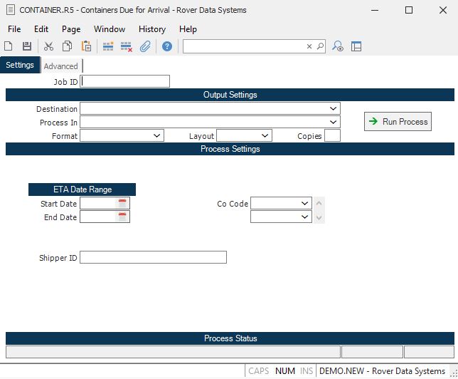 Start Date Enter the start of the date range for which you wish to print containers due for receipt. This date is used to select containers with an estimated arrival date.