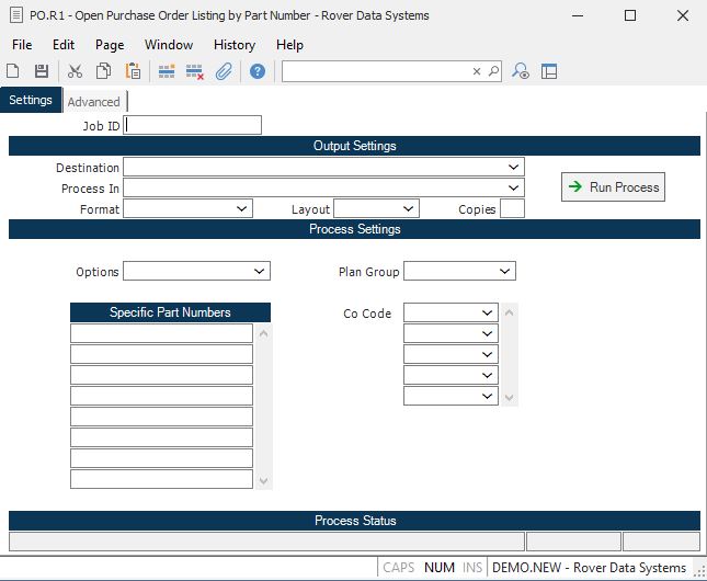 Plan Group If you wish to print this report for a selected planning group, enter that group here. To print all open PO's, leave this field empty.
