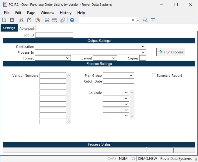 Summary Report Check this box if you wish to print a summary report by vendor. This report displays the total dollars and quantities open by vendor.