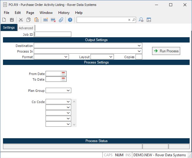 Co Code Enter the company codes you wish to appear on this report. If left blank all company codes will be included.