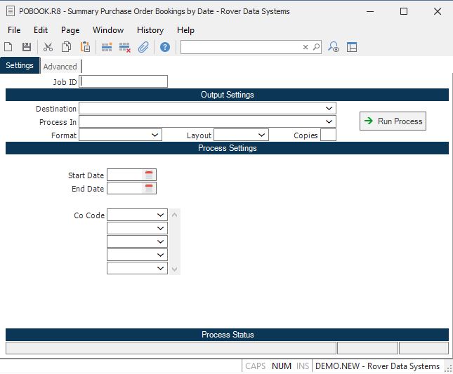 Summary Purchase Order Bookings by Date (POBOOK.R8)