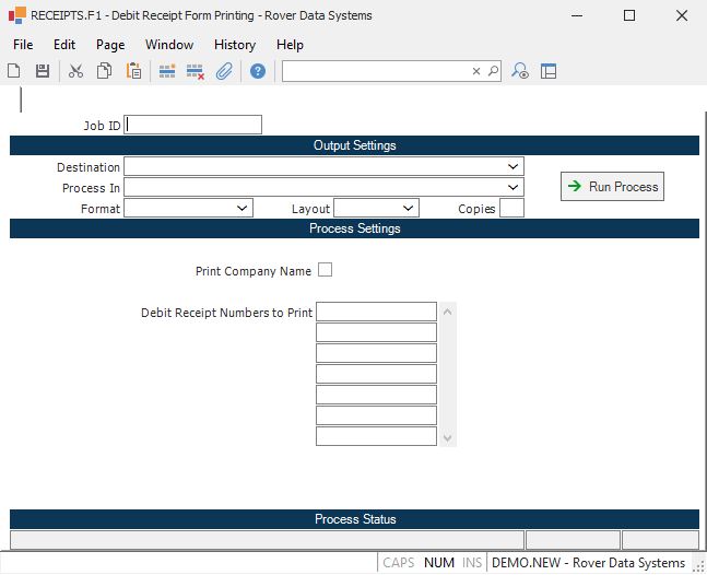 Debit Receipt Form Printing (RECEIPTS.F1)