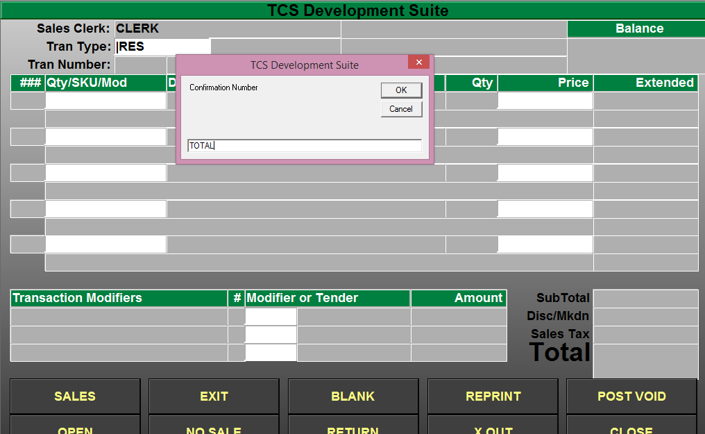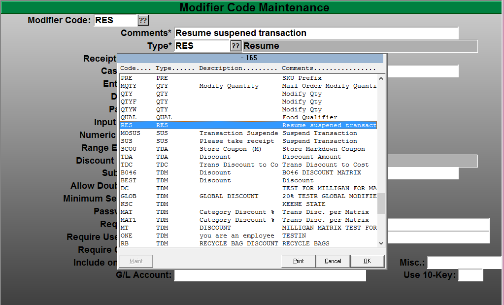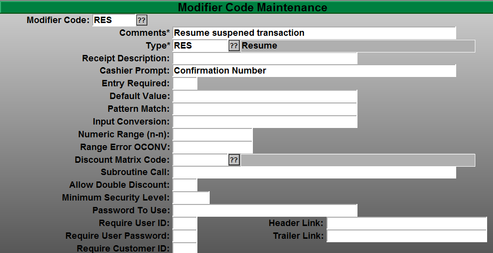 - Select your Modifier code for resuming a transaction. The default is “RES” for Resume.